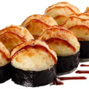Нори, рис, кларий, грудка копченая, огурец, сыр сливочный, фирменный соус, унаги